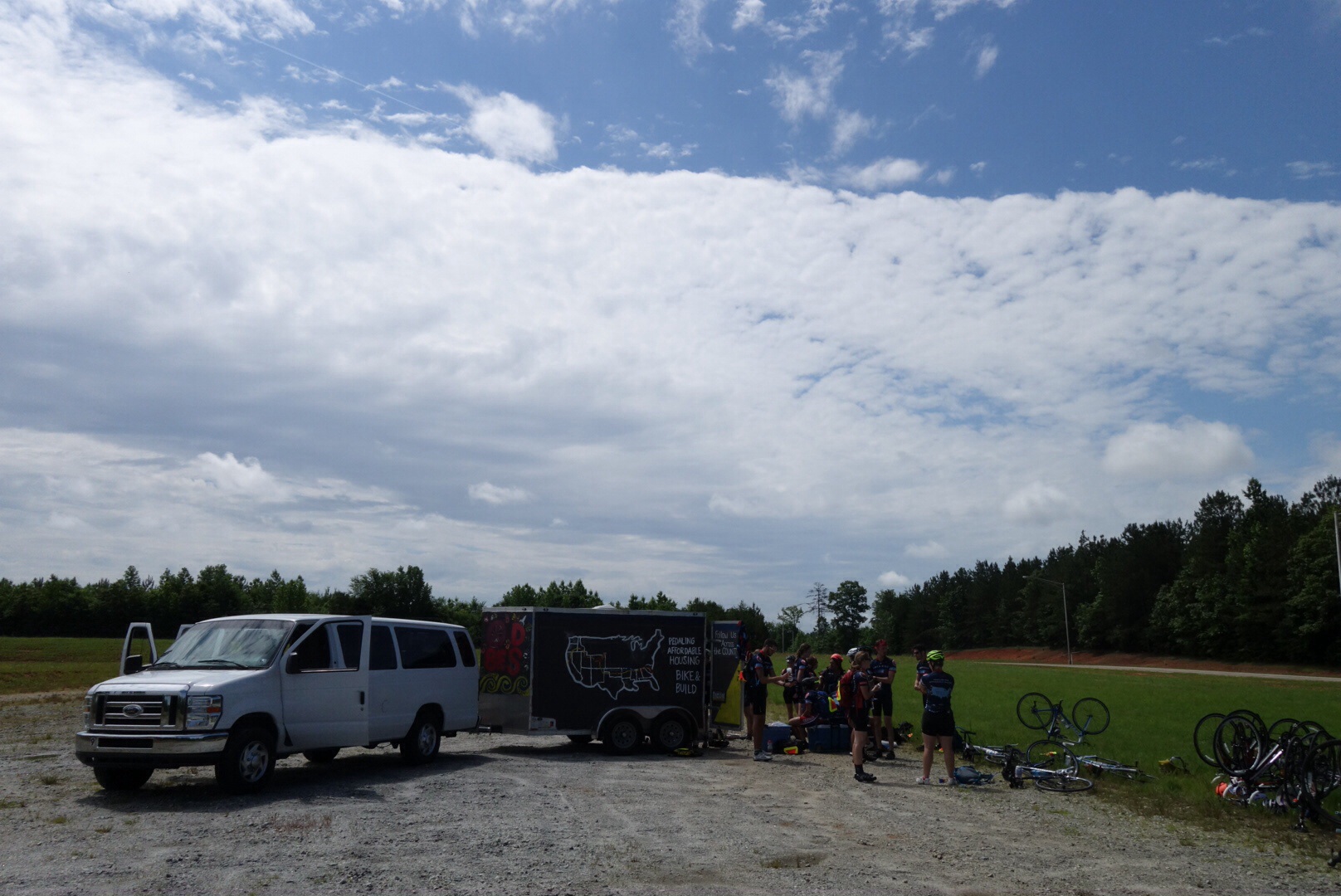 Today's tide was around 70 miles and took is into Greenville, SC. Due to an unhappy accident, I had to ride in the van for the second half of the trip. (I rode down a driveway without a helmet. Oops.) I did get some cool pictures from the van, though. So it wasn't all bad.