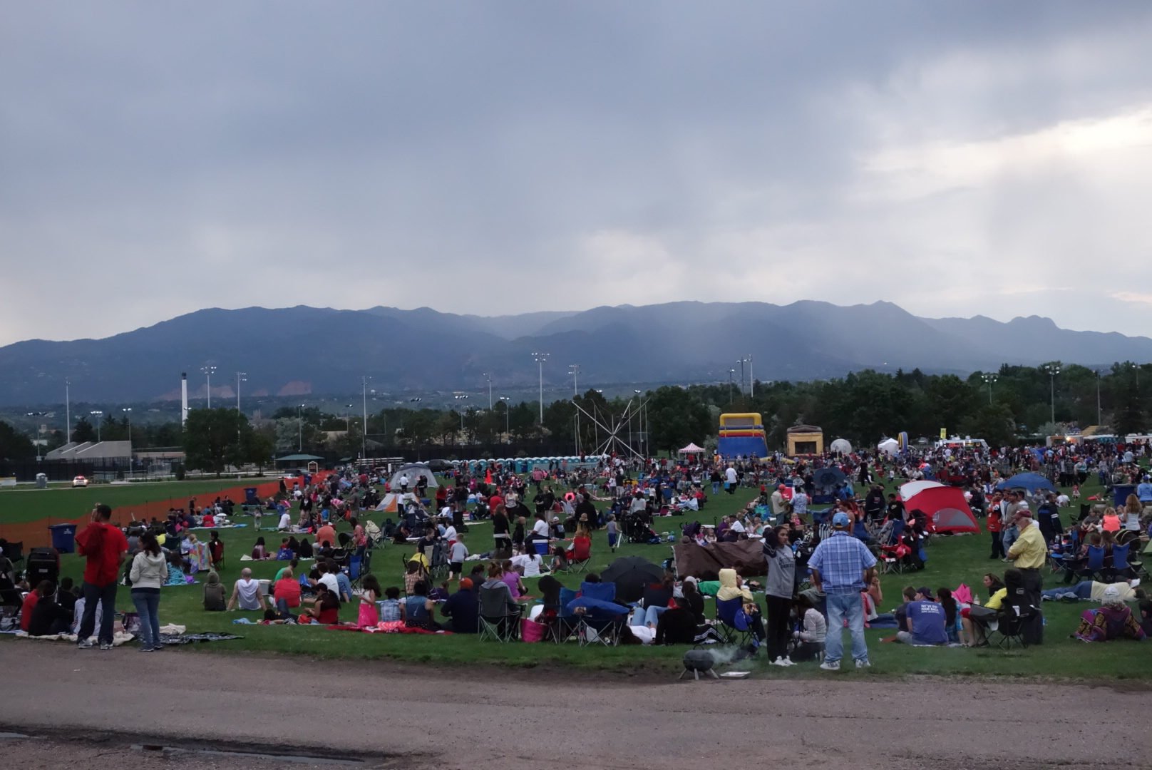 The fireworks started around 9. They were perfect. Right overhead, but not dangerously close. And since CO Springs is sizable, the show was impressive.