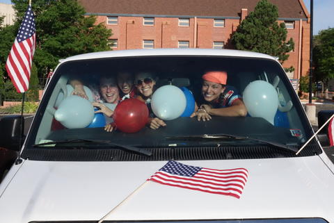 We started the day with a very patriotic van: overnight, a few riders filled the van to the brim with red, white, and blue balloons. When the leaders found out, they made us clean the thing out (after laughing quite heartily). Watching 20-somethings running around with pointy things trying to burst balloons wandering off in the morning breeze is ... something.
