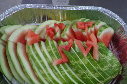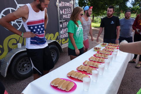When we arrived in Fountain (a suburb of Colorado Springs where Habitat has a development) the leaders had arranged a patriotic afternoon. Or I think that's what it was. Amanda arranged for a hot dog eating contest, and we prepared a nice dinner including fresh watermelon.