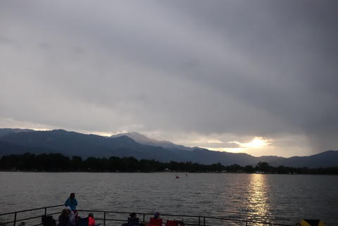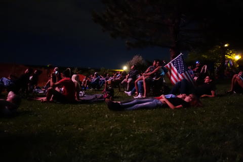 I wanted to watch fireworks. Getting anywhere from Fountain is challenging. The population density is low enough that public transit doesn't exist, and we couldn't find a taxi. Another rider found that Uber sort of served the area and managed to hail a ride when an Uber driver got close. The six of us - Dustin, Alex, Zoe, Zoe, Andrew, and I - arrived downtown around 7pm, a while before the fireworks. We found concessions, some fun fairground rides, and a great view.