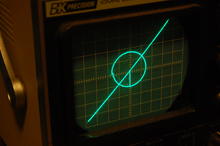 After drawing basic shapes on the oscilloscope (circles, lines, and rectangles), I decided to try something more adventurous: bitmaps. Since the soundcard outputs no more than 192,000 samples per second and the oscilloscope doesn't retain data for much longer than 1/60th of a second, I knew that only small images would work.